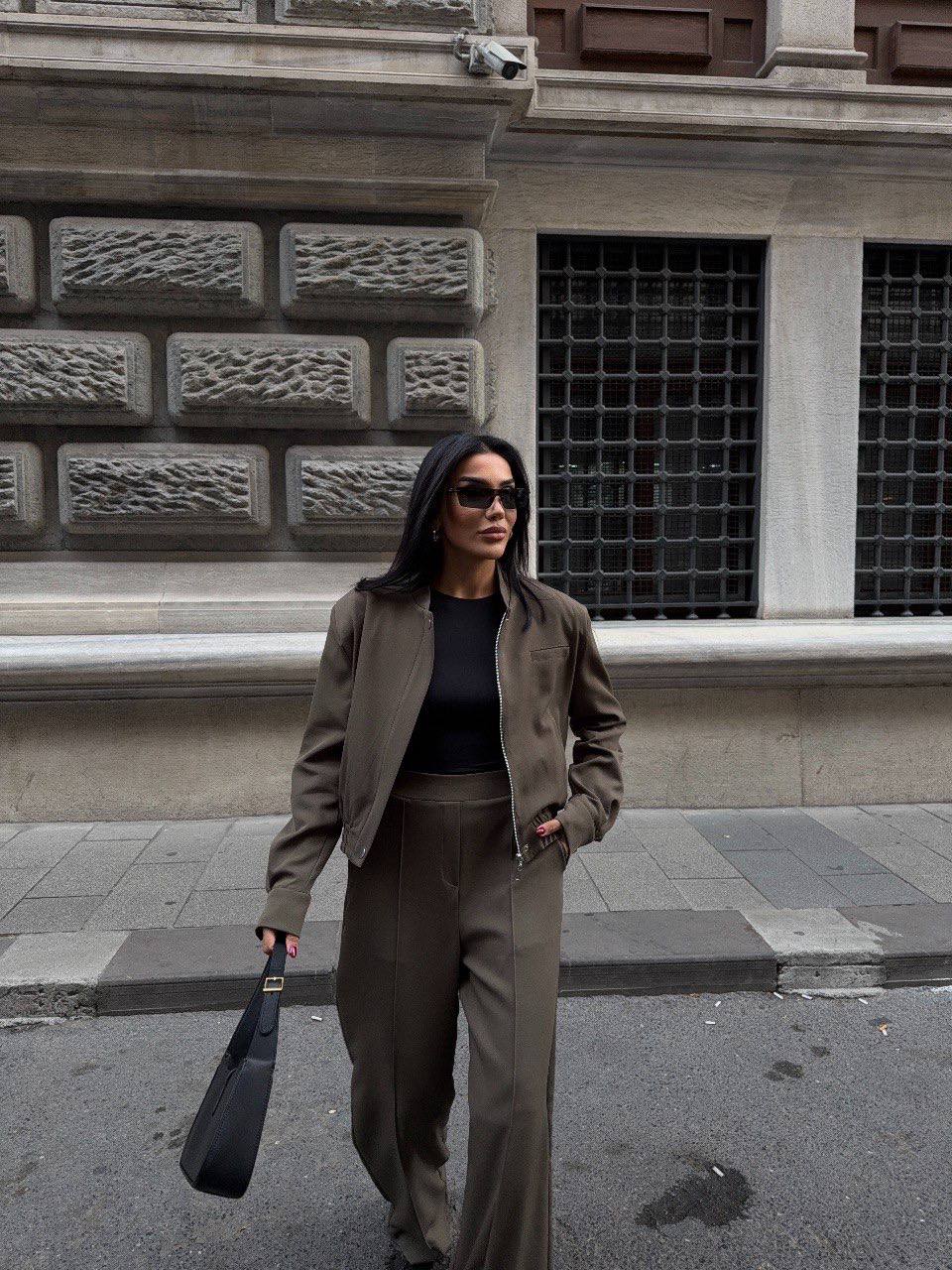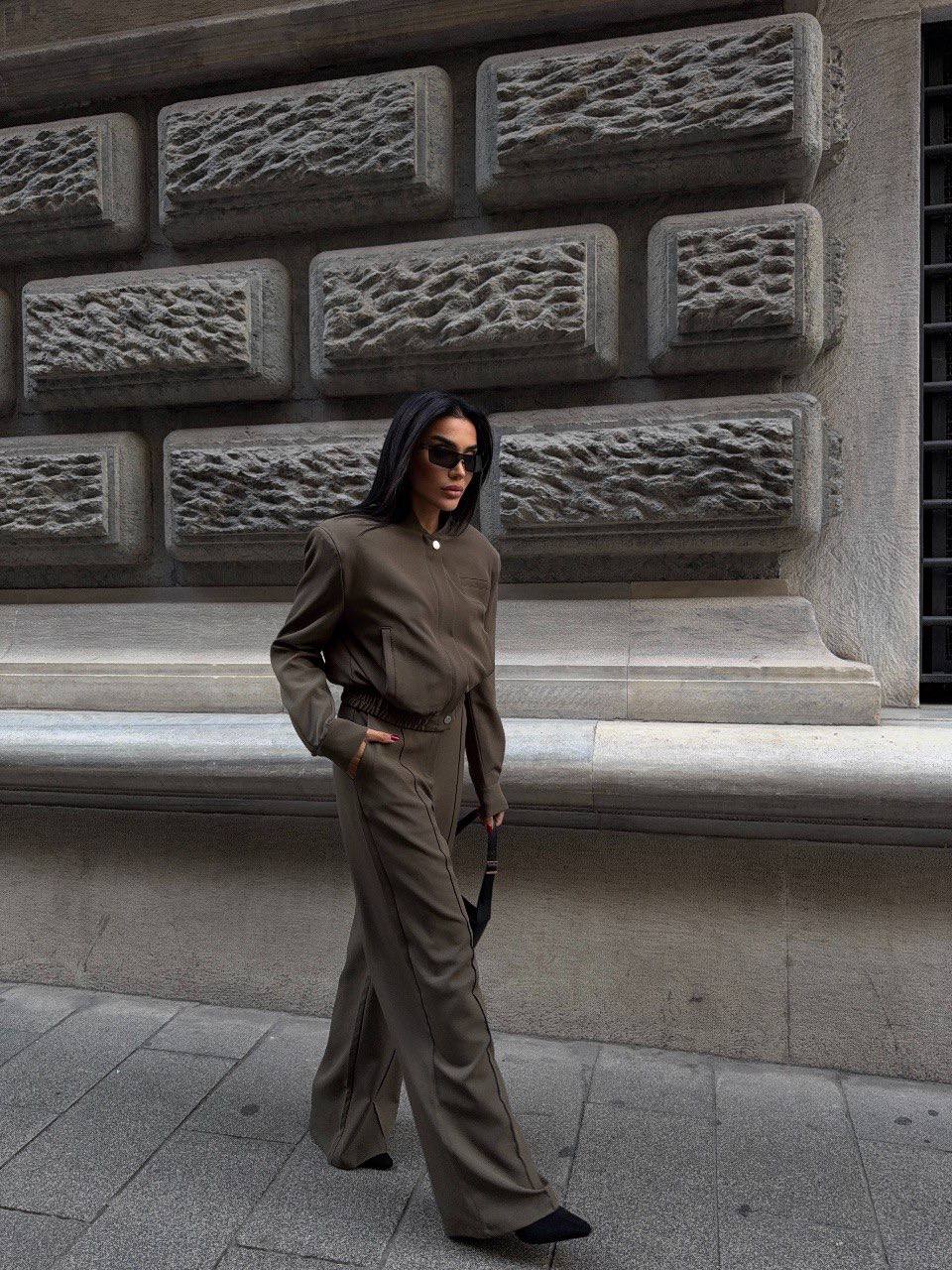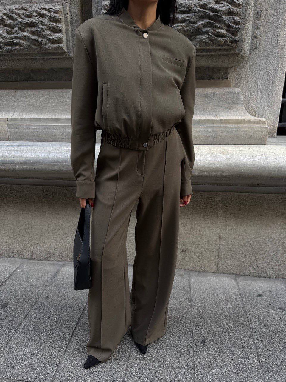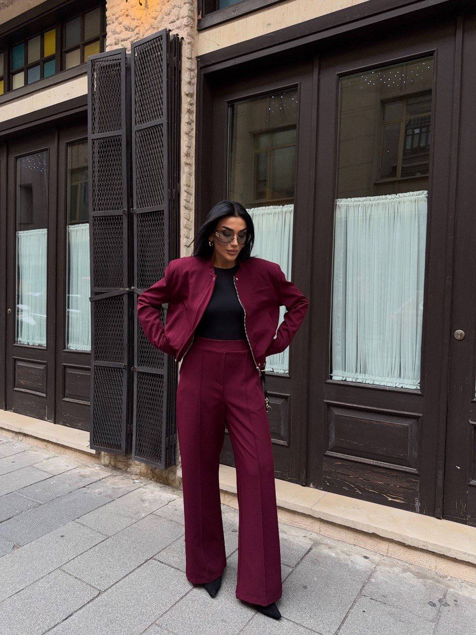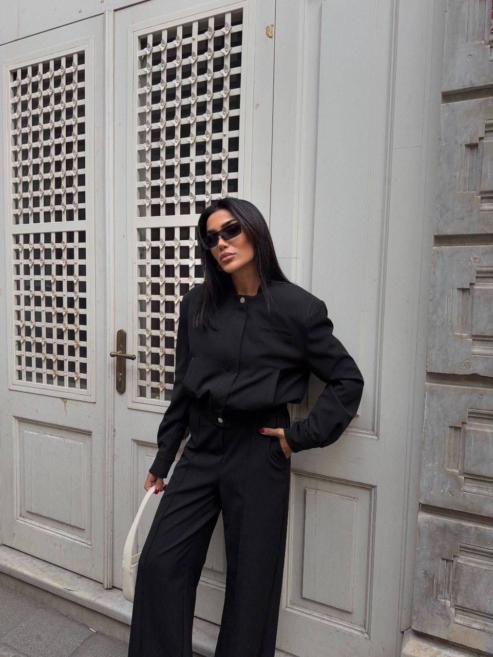 Effortless elegance meets modern tailoring. This two-piece set features a structured jacket and wide-leg trousers, designed to create a sleek and sophisticated silhouette.