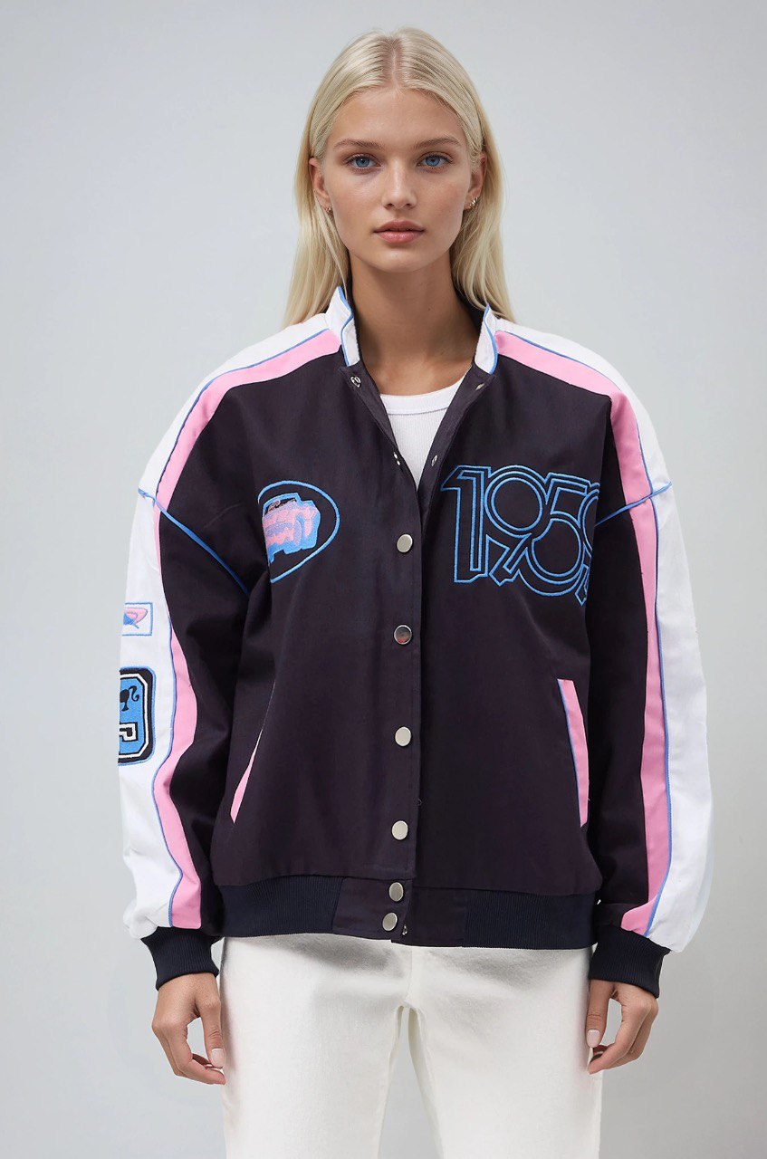 Drzna, igriva in nedvomno privlačna – ta bomber jakna je narejena, da izstopa. Zasnovana s kontrastnimi paneli in grafično navdihnjenimi detajli, v vašo vsakodnevno garderobo vnese svež, športen pridih.
